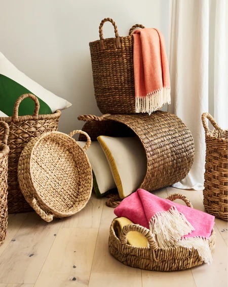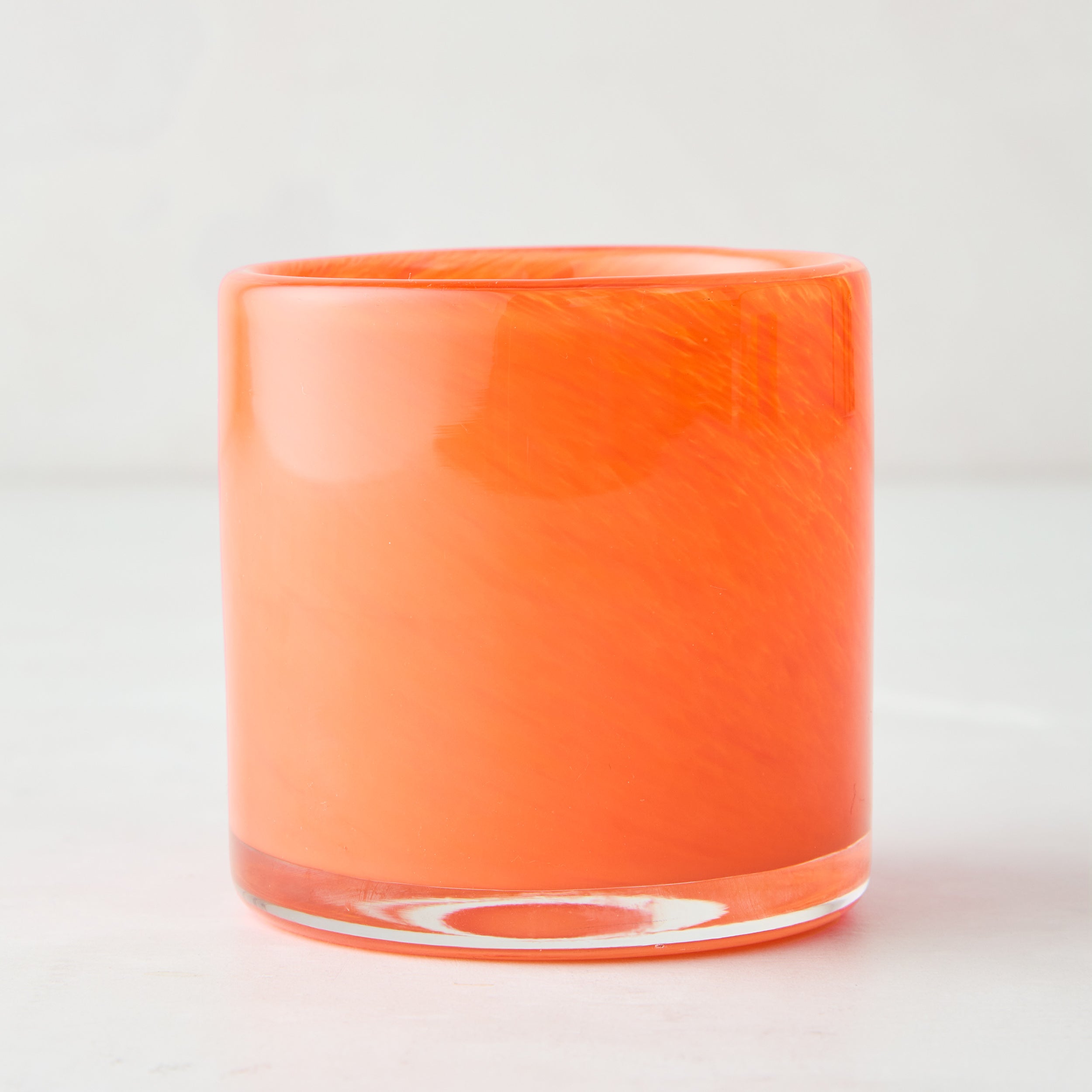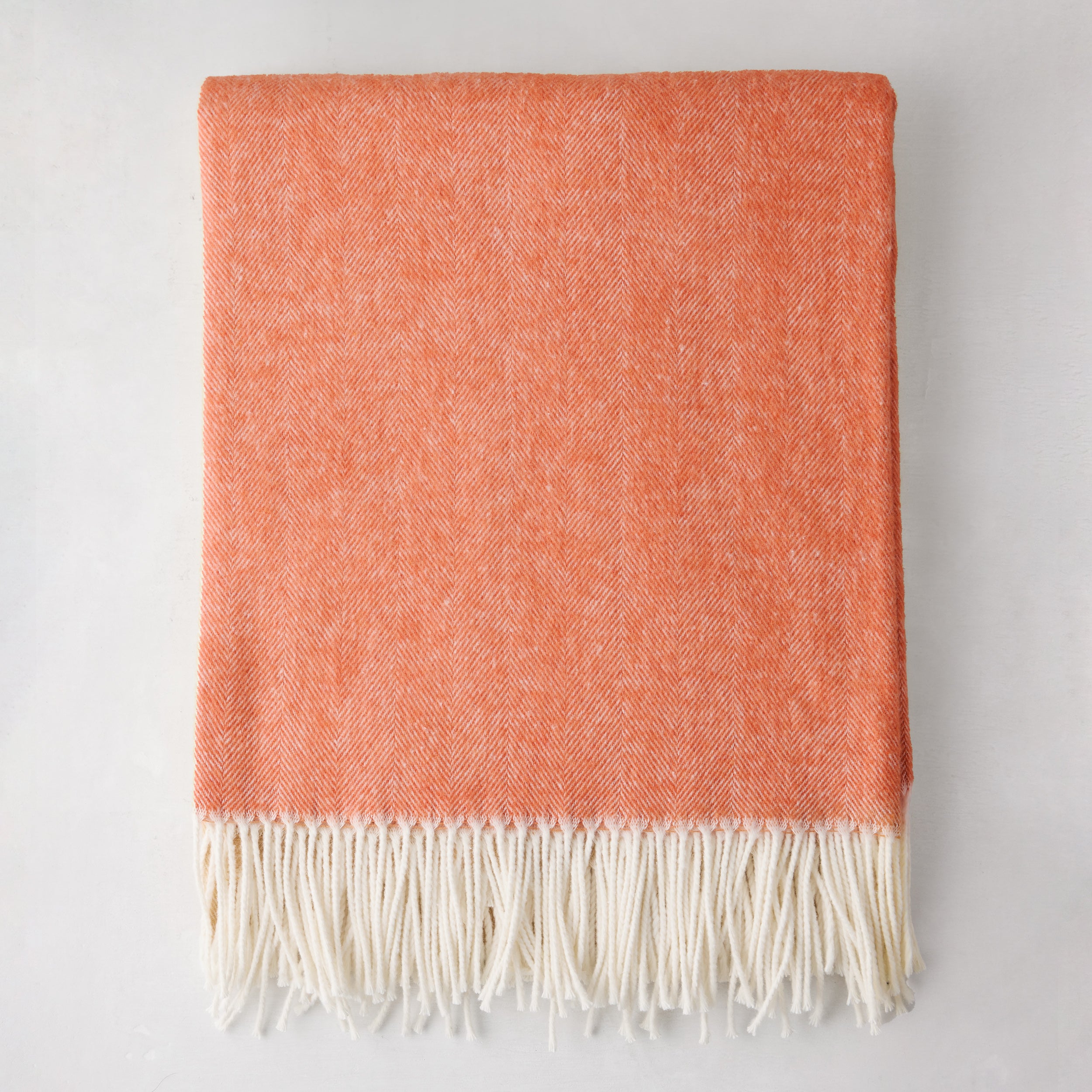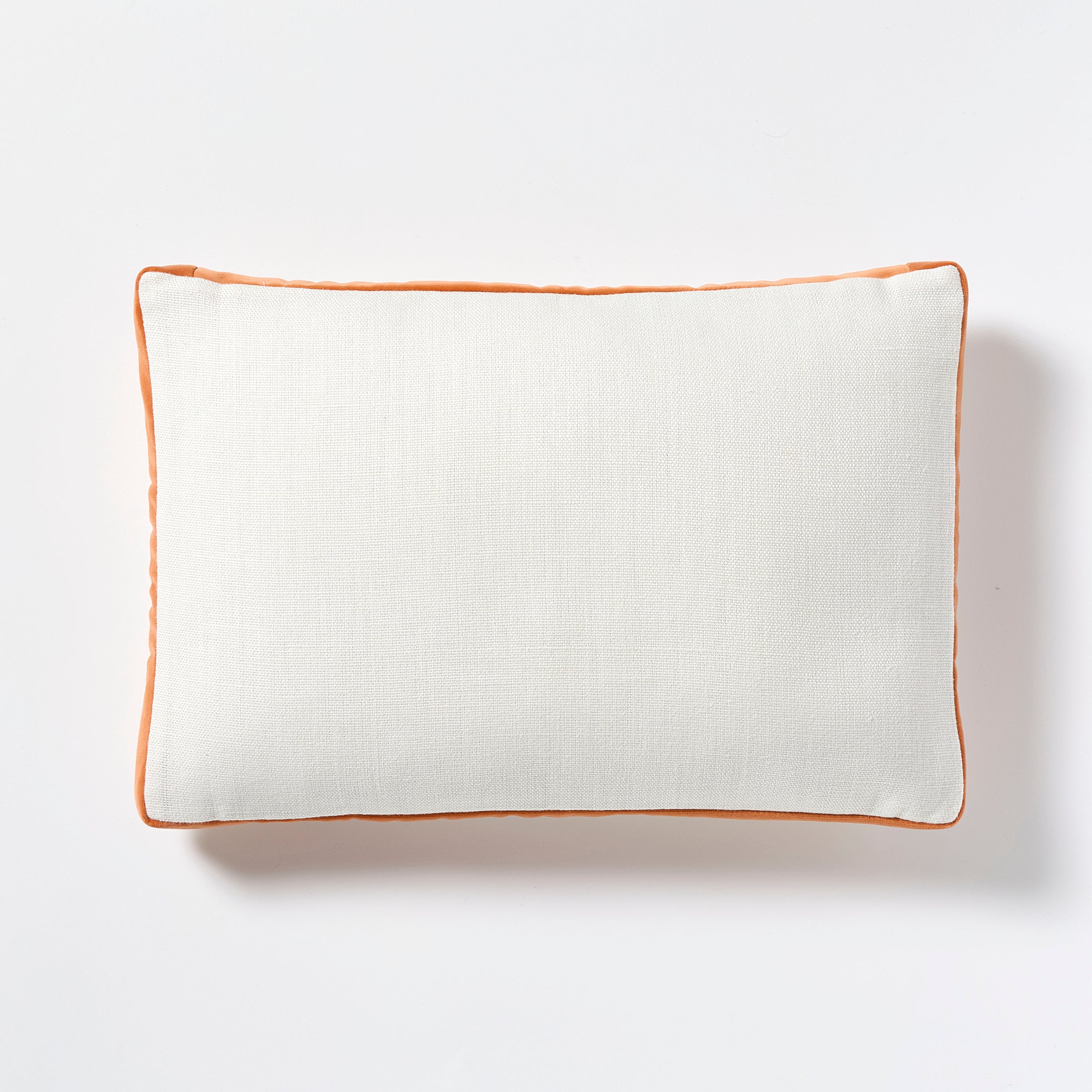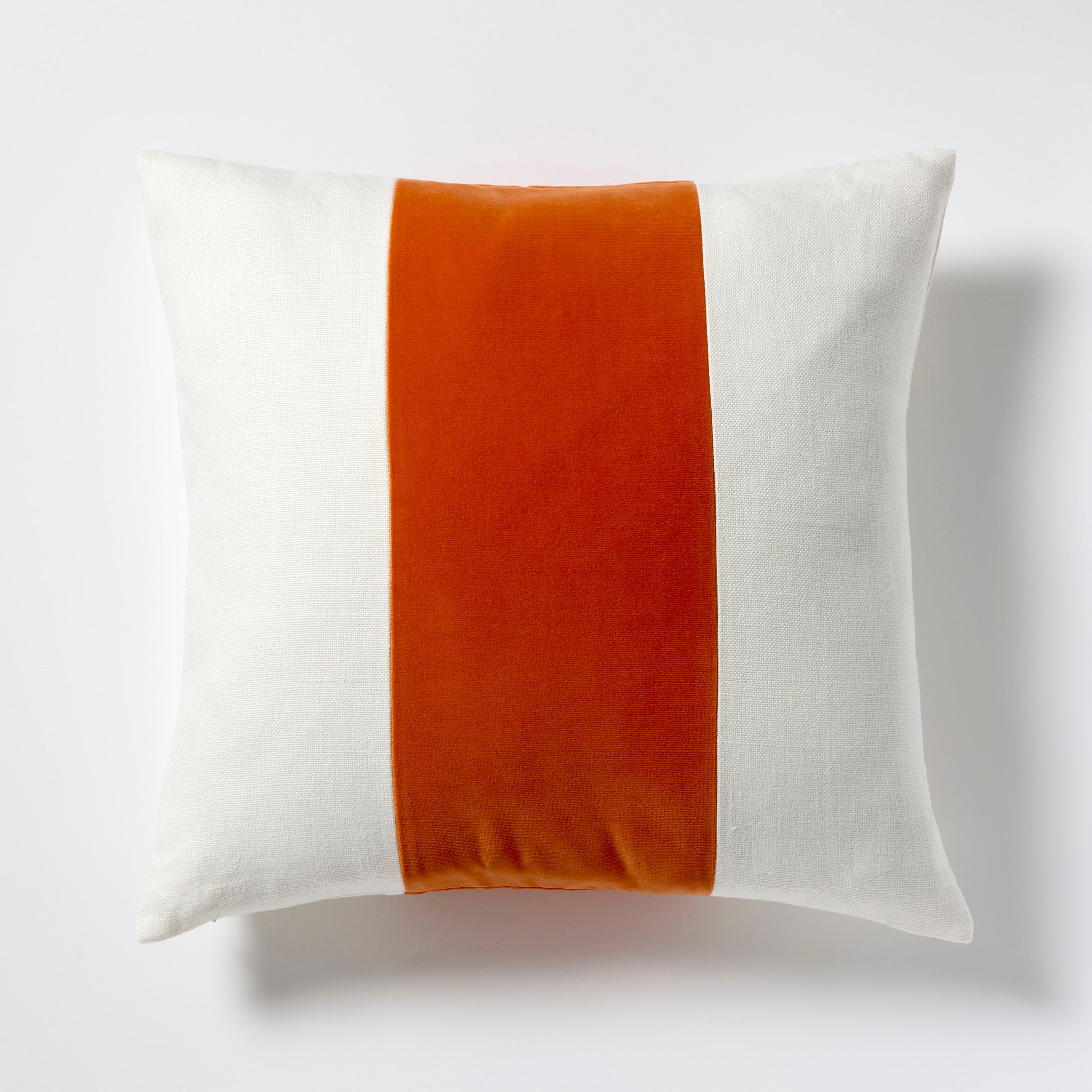 Melon Orange Wide Velvet and Linen Stripe Pillow