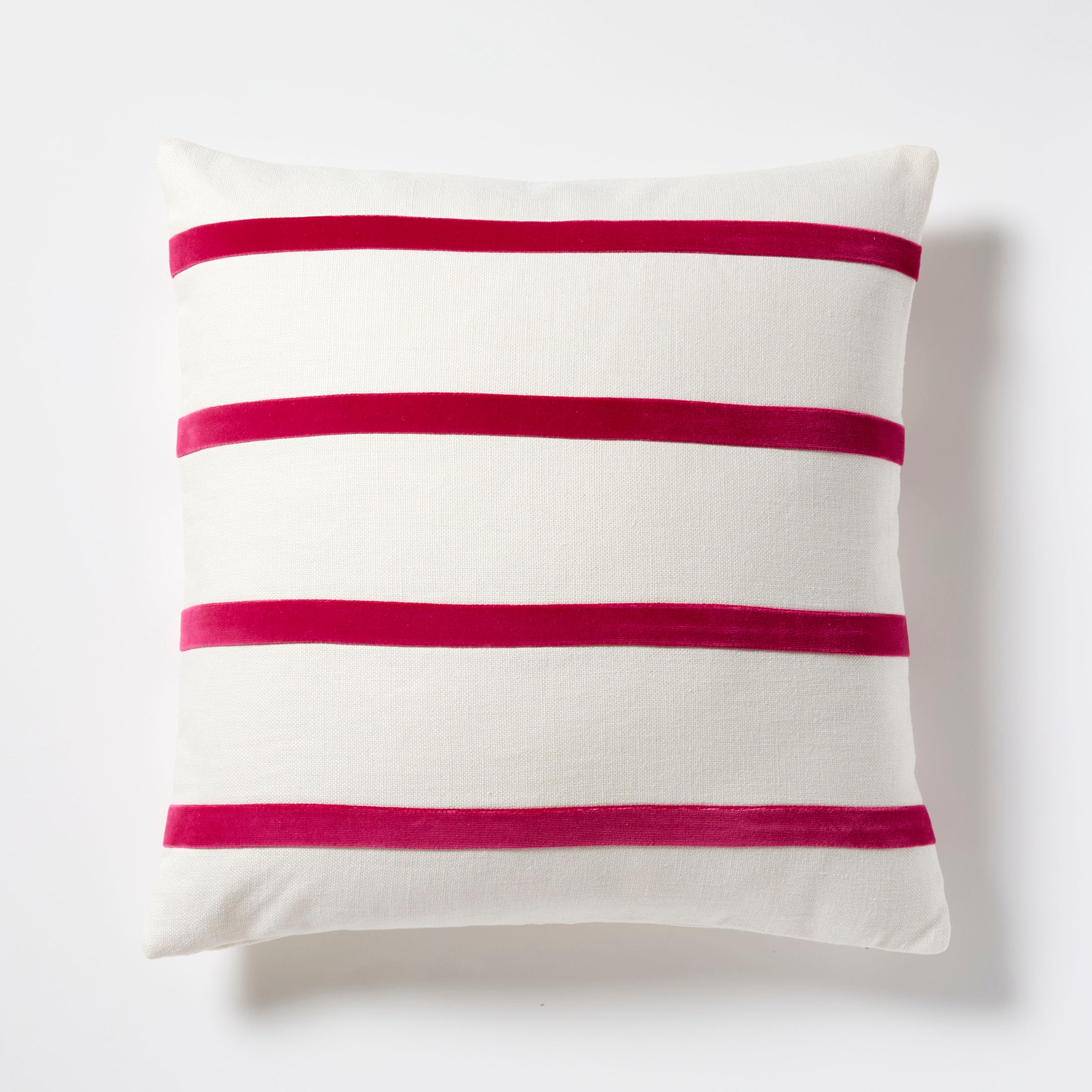 Fuchsia Pink and Ivory Thin Velvet Stripe Pillow