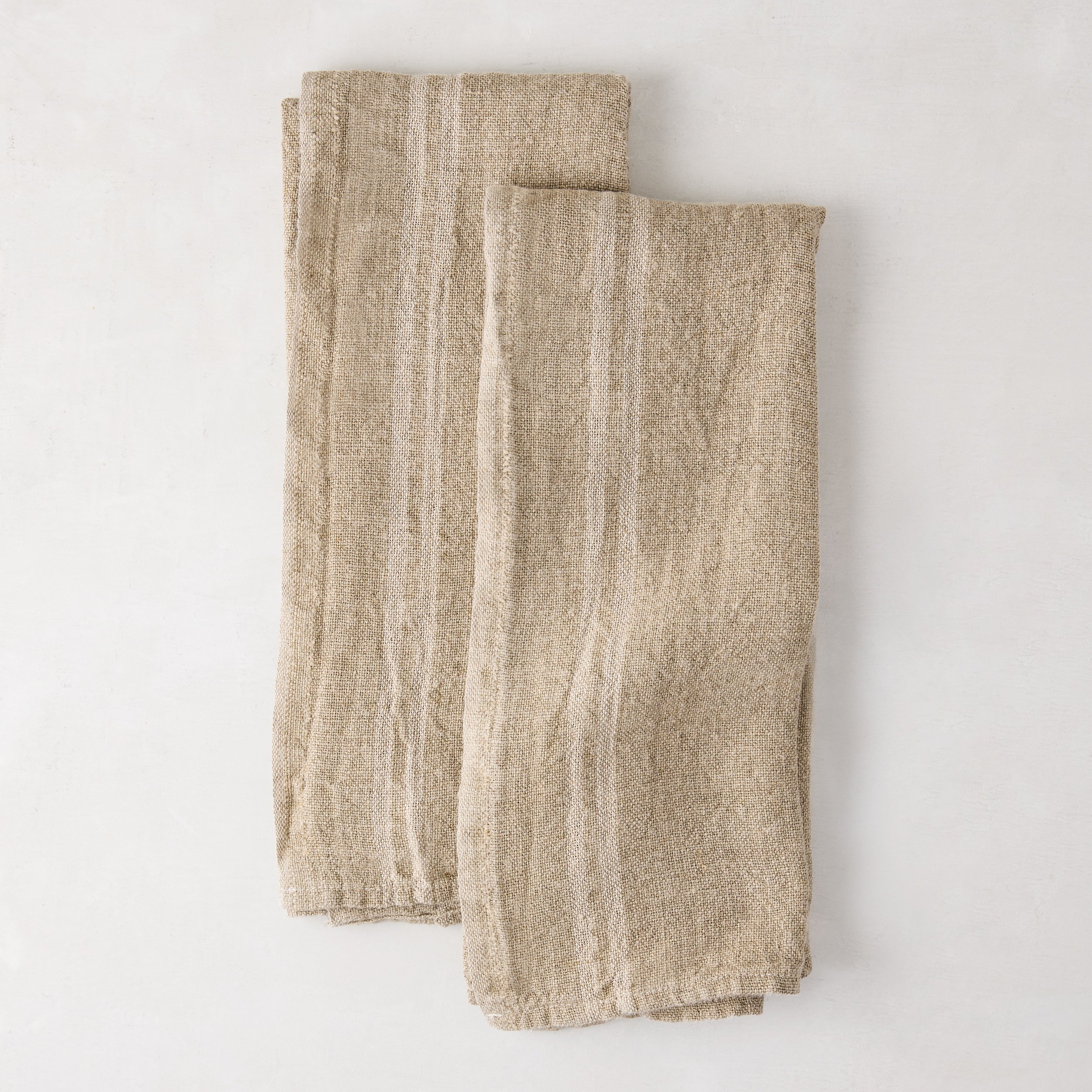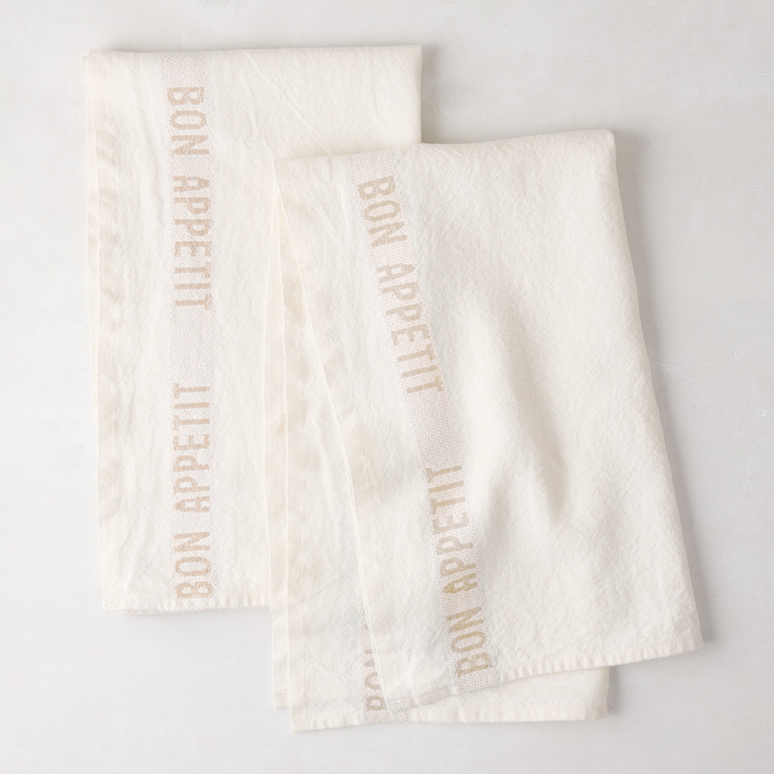 Khaki "Bon Appetit" Linen Hand Towels, Set of 2