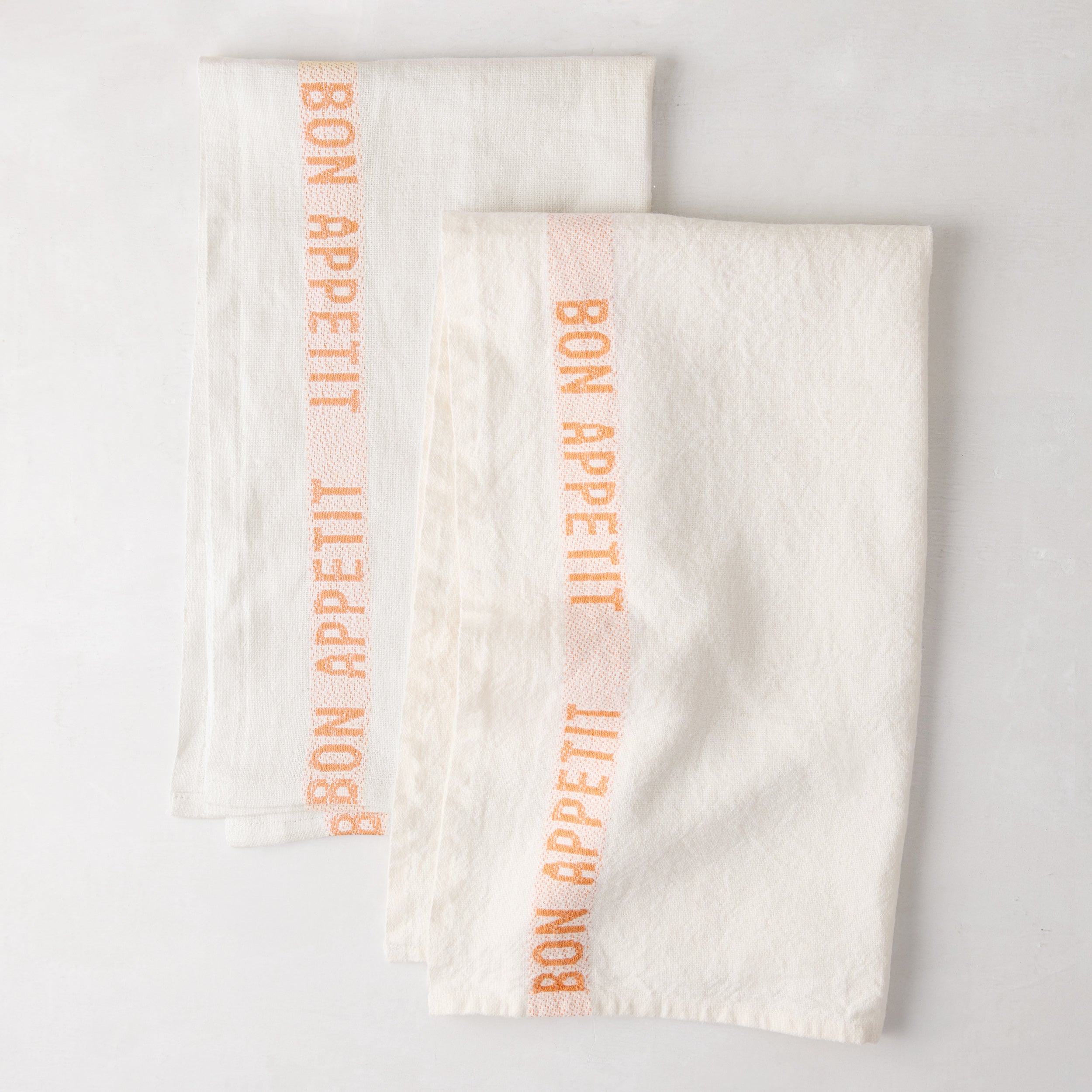 Orange "Bon Appetit" Linen Hand Towels, Set of 2