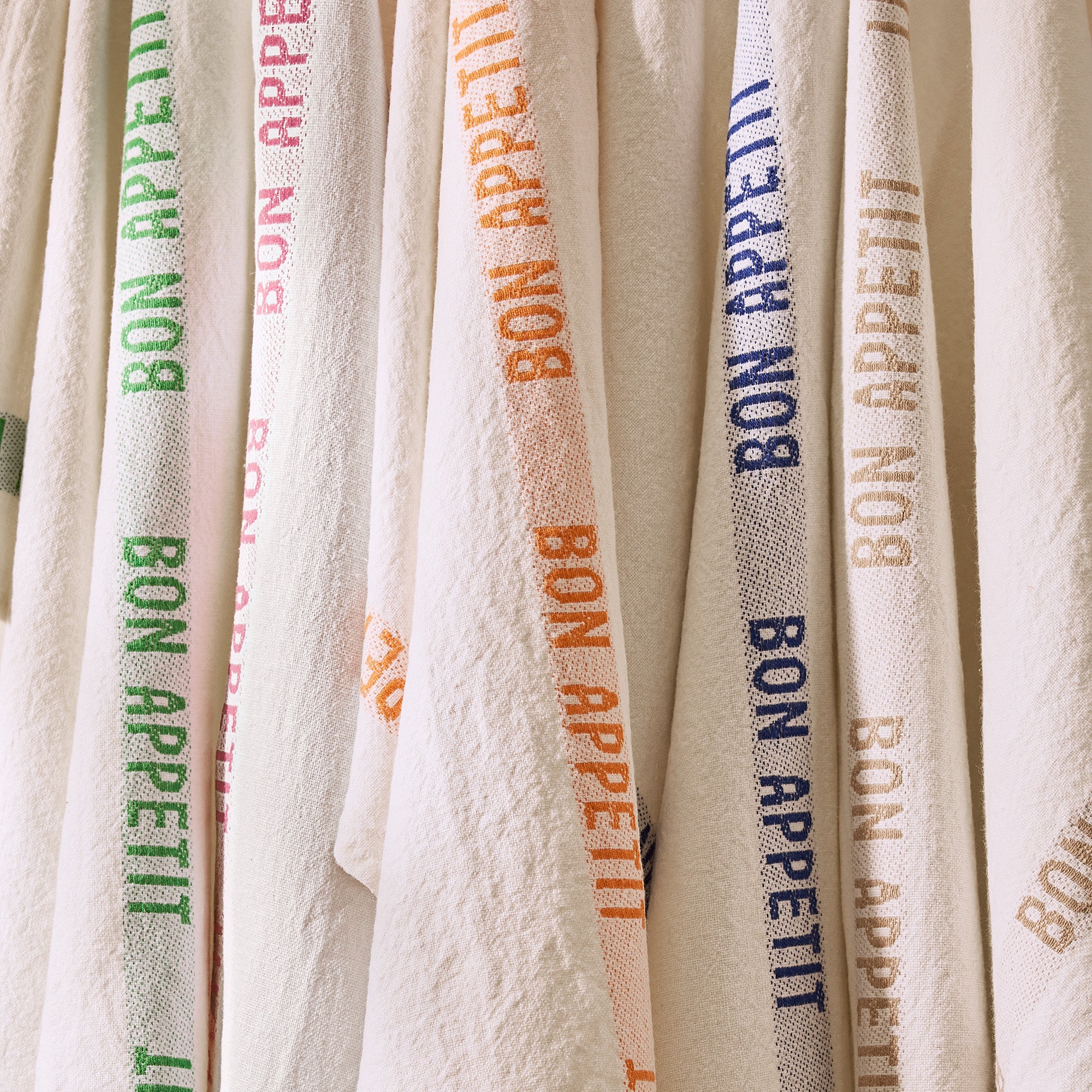 Navy "Bon Appetit" Linen Hand Towels, Set of 2