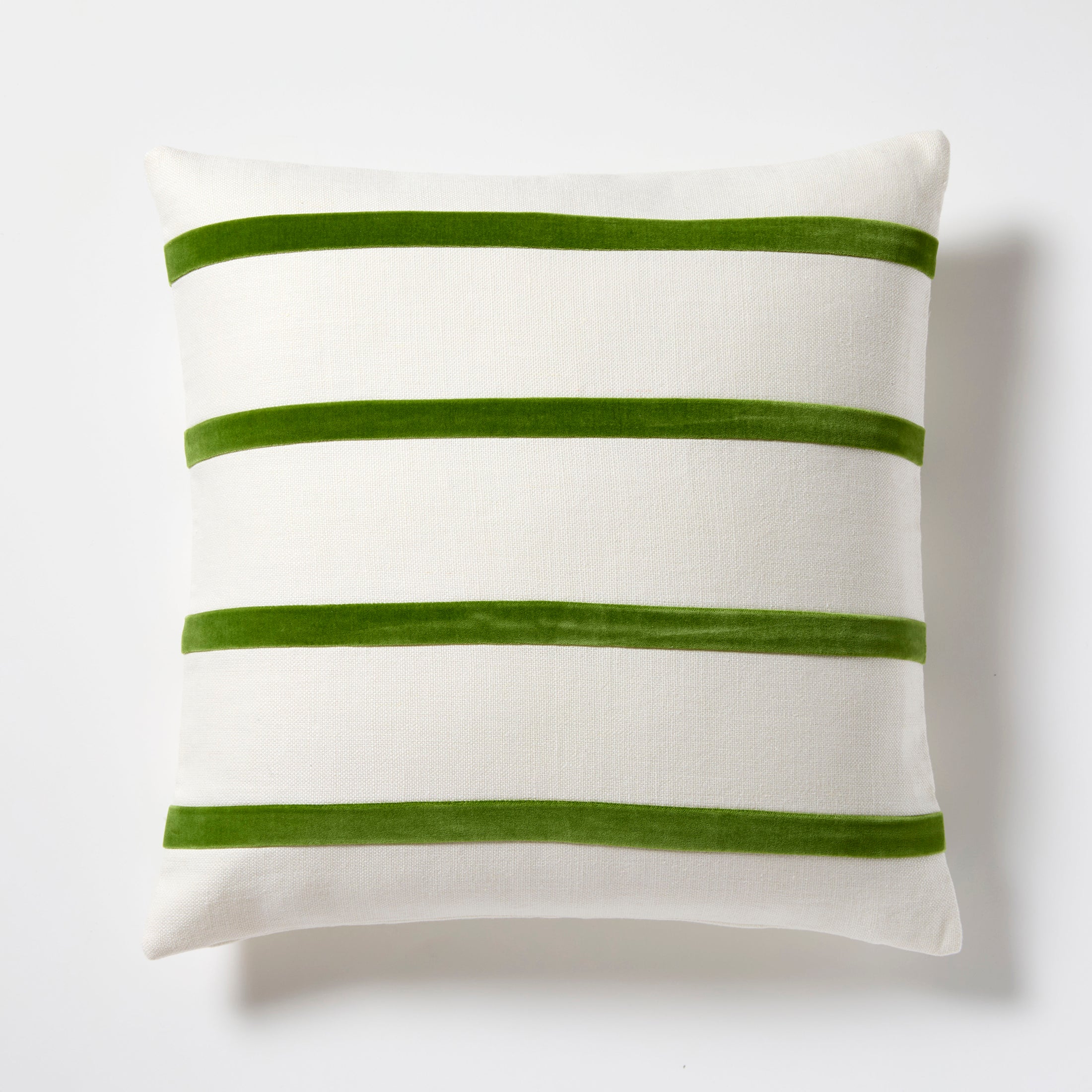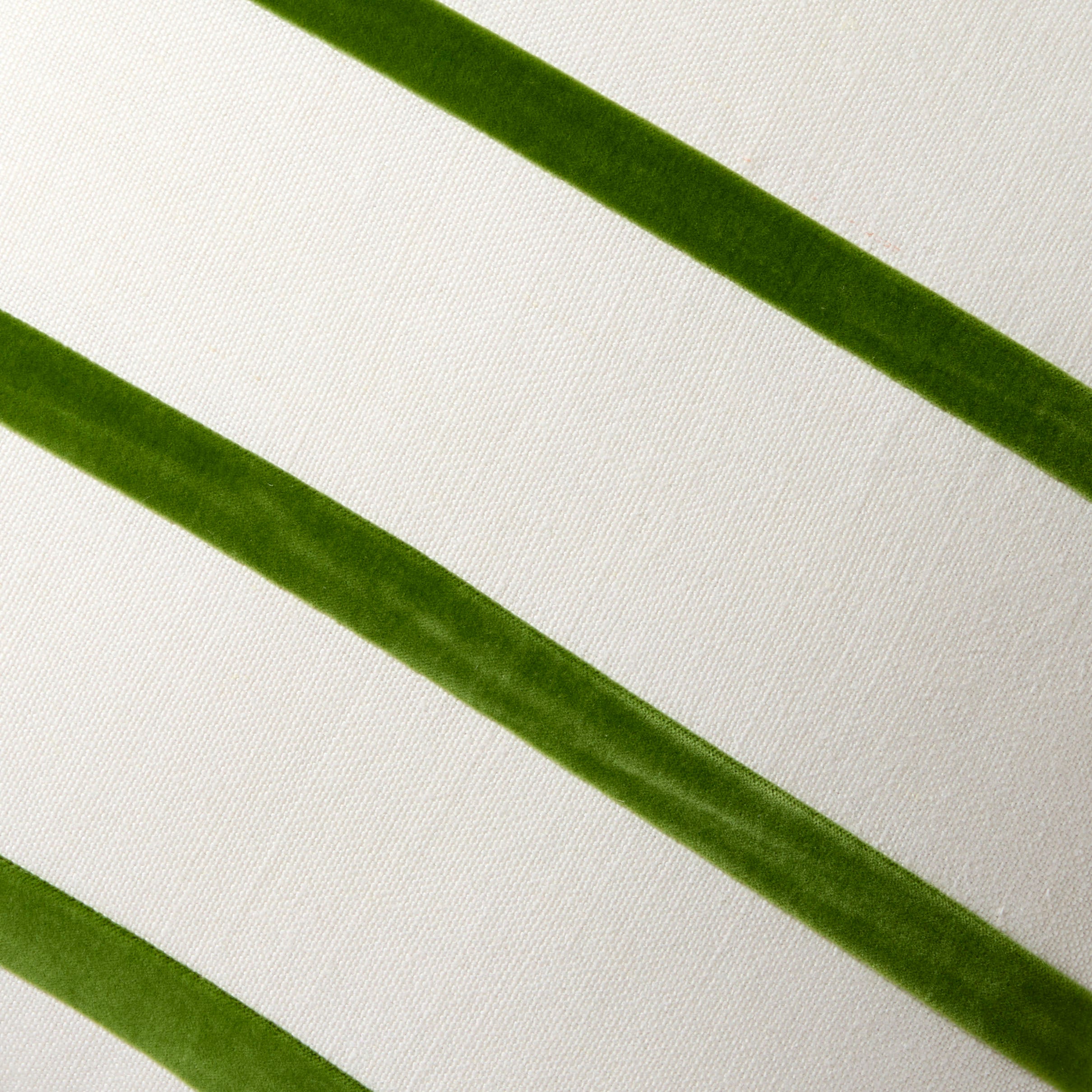 Wasabi Green Wide Velvet and Linen Stripe Pillow