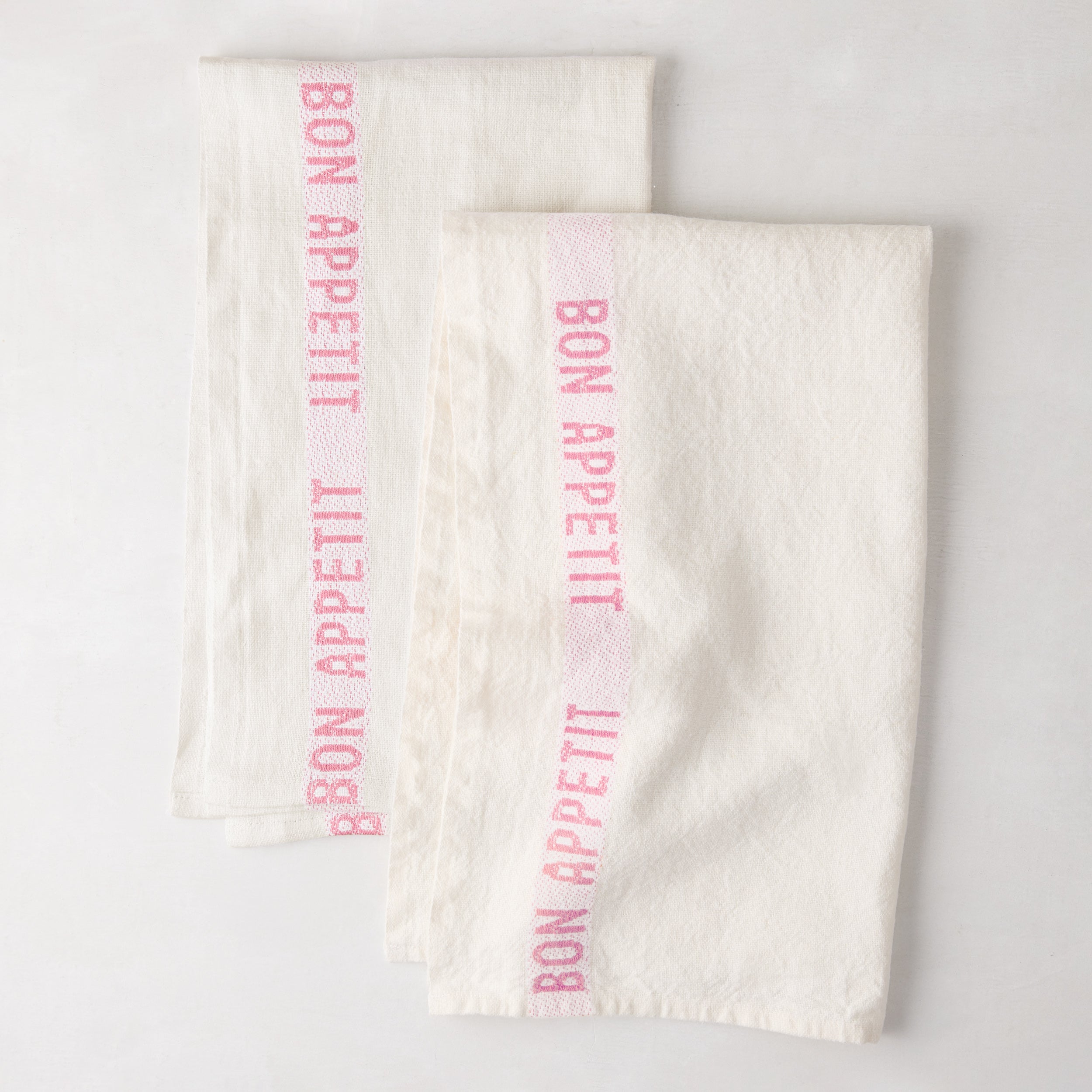 Pink "Bon Appetit" Linen Hand Towels, Set of 2