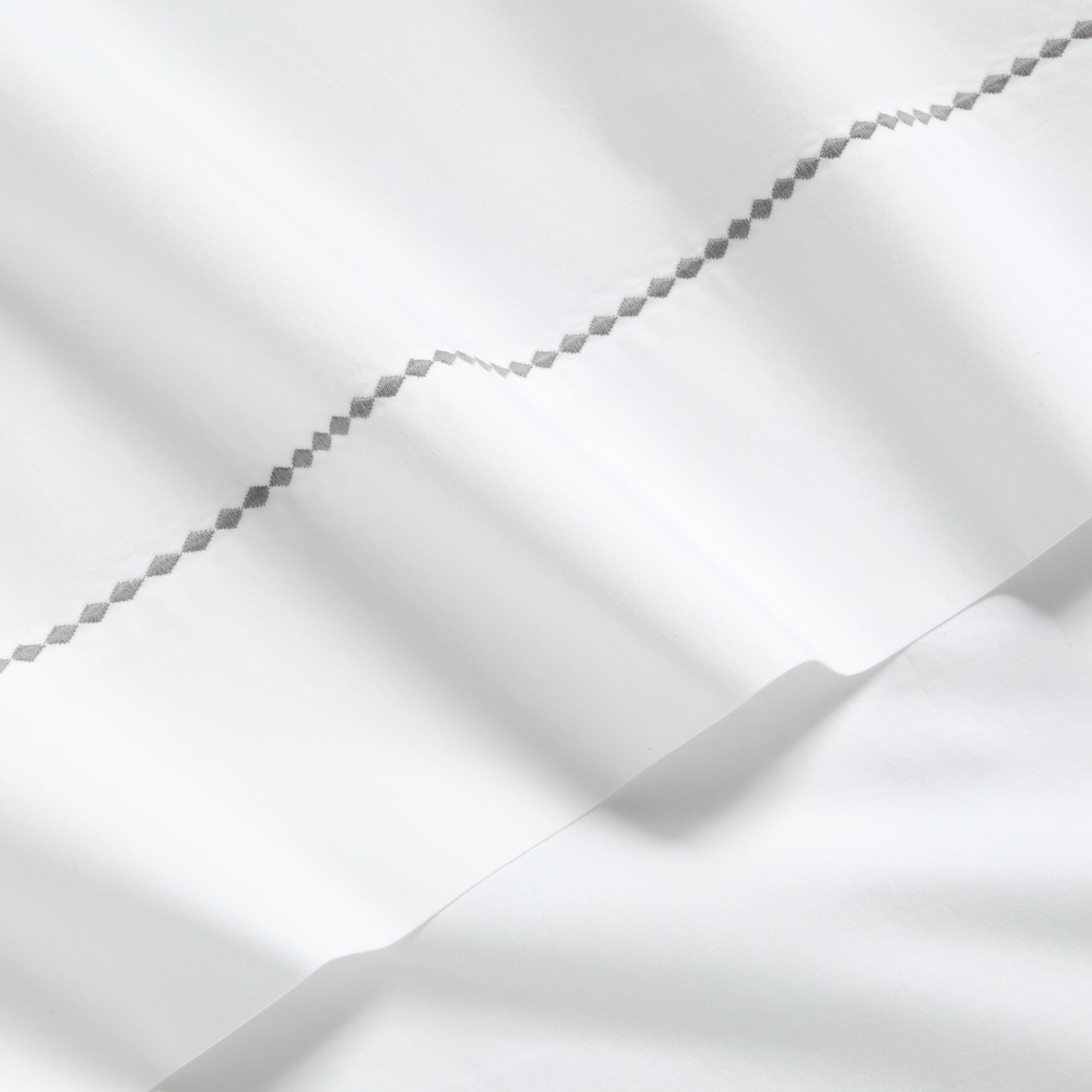 Bold and classic, our Portuguese Percale Grey Diamond Collection takes a cue from the bedding we found in the finest European boutiques and hotels. The Grey Diamond Percale Sheet Set is cool and crisp, softens with wash and use, and is the perfect way to tuck into luxury every night. It is woven from extra-long staple cotton in a 310-thread-count percale. The tailoring and grey diamond detail in a sophisticated color palette make this a versatile collection that layers easily with other bedding and interior style.