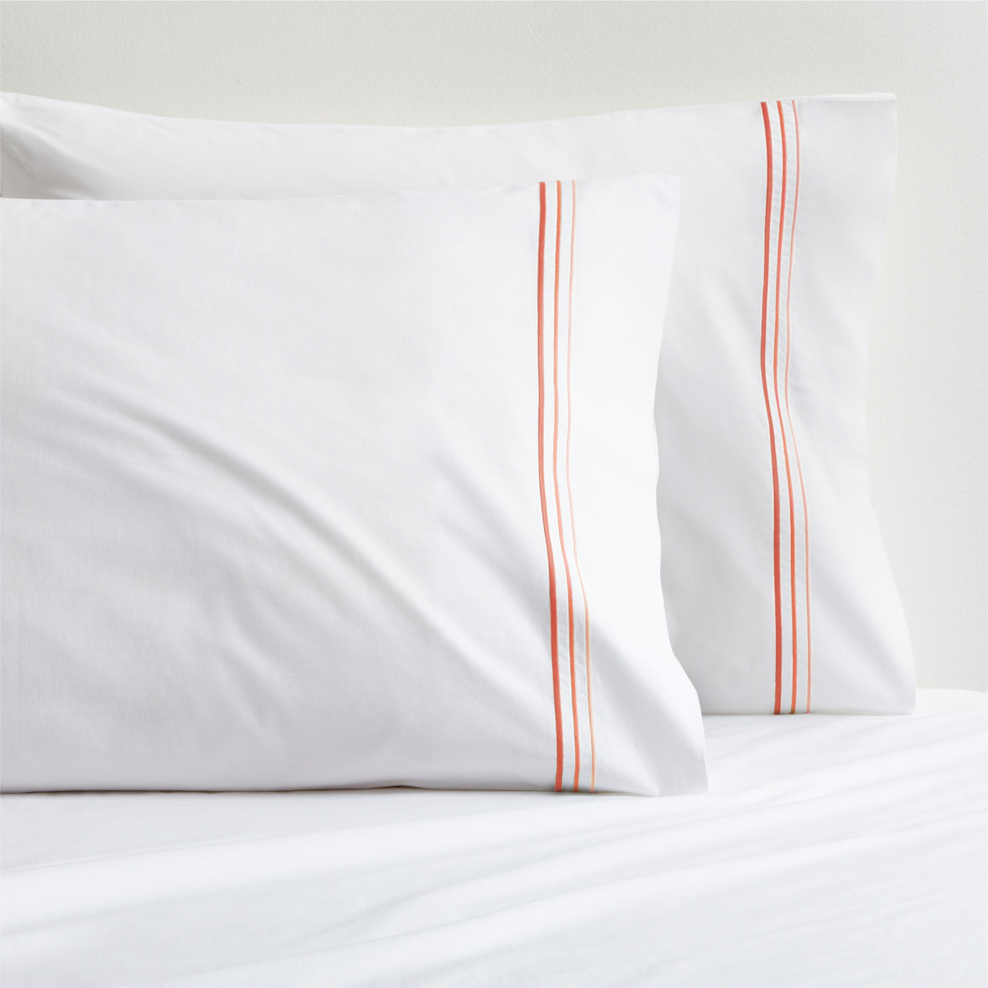 Quiet detail, lasting impression. The Orange Triple Stitch Percale Sheet Set features three lines of embroidery in an ombre orange for a subtle, sophisticated detail. Soft, crisp, and lightweight – woven from 100% long-staple cotton in 310-thread-count percale. Exclusively ours, in colors you won’t find anywhere else.