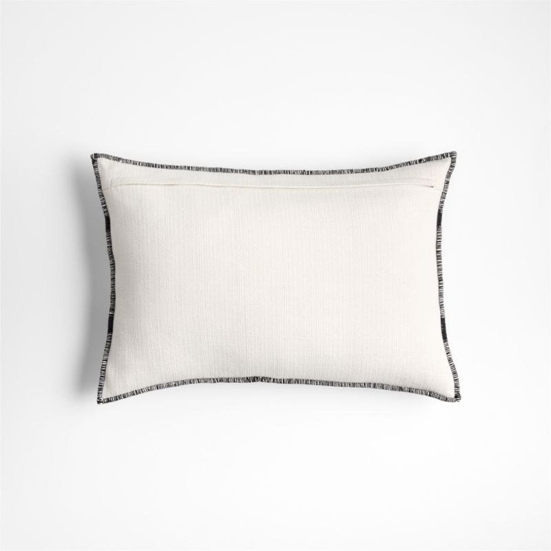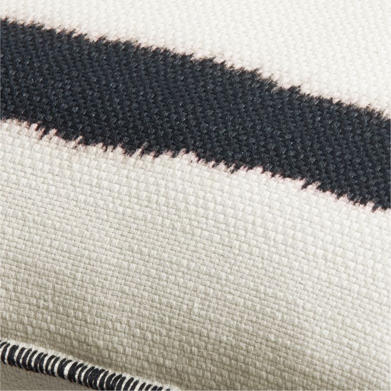 Our Ashi pillow accents your sofa or armchair with a relaxed, bohemian vibe thanks to its intriguing textures, rich colors and artisanal quality. The dynamic design prints slubbed organic ivory cotton with painterly inky black stripes. Skilled craftspeople highlight the border with hand-sewn contrast whipstitching. We love layering Ashi with our other throw pillows in a classic palette of black and off-white. Our exclusive lumbar pillow includes your choice of a plush feather-down or lofty down-alternative insert.