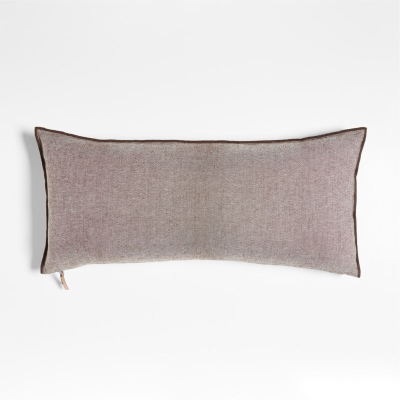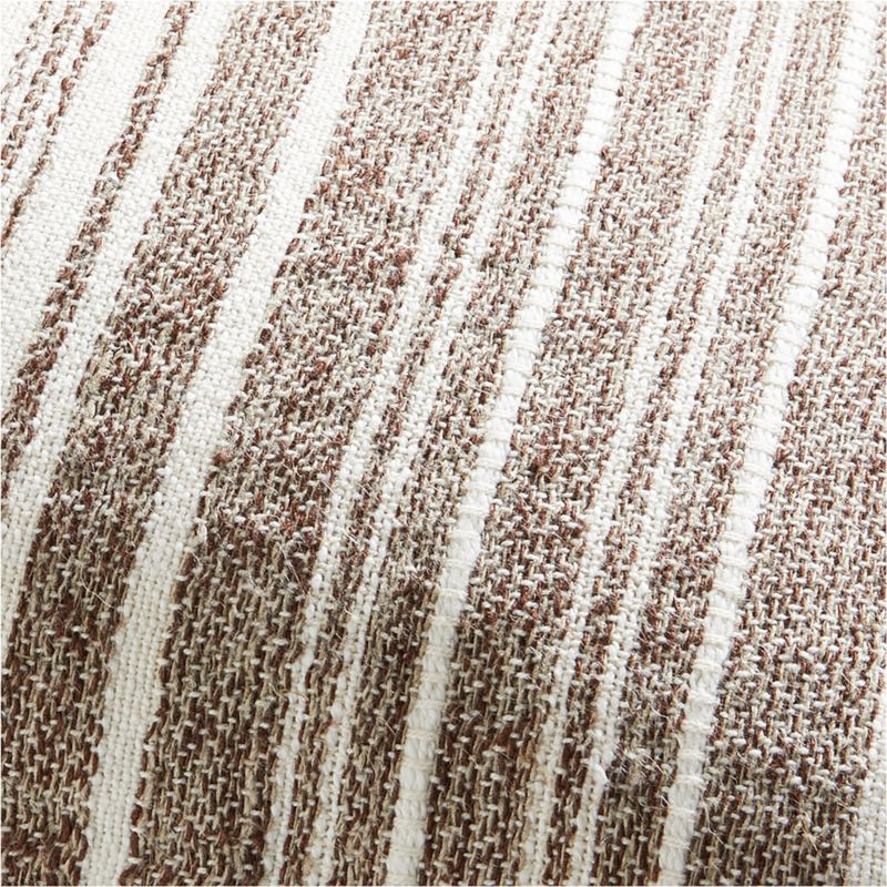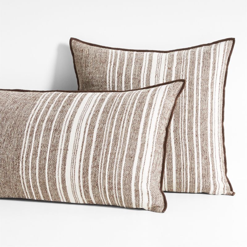 Offset, organically varied lines stripe our Bande throw pillow cover for a chic and casual look. Dyed a dark natural hue and creamy white to coordinate effortlessly with our bedding, the blend of linen and organic cotton threads weave a nubby, tweedy texture and a variegated pattern. Dark brown merrow stitching finishes the asymmetrical pillow cover with a touch of crisp contrast. For maximum comfort, fill our exclusive lumbar pillow cover with a plush feather insert sold separately.