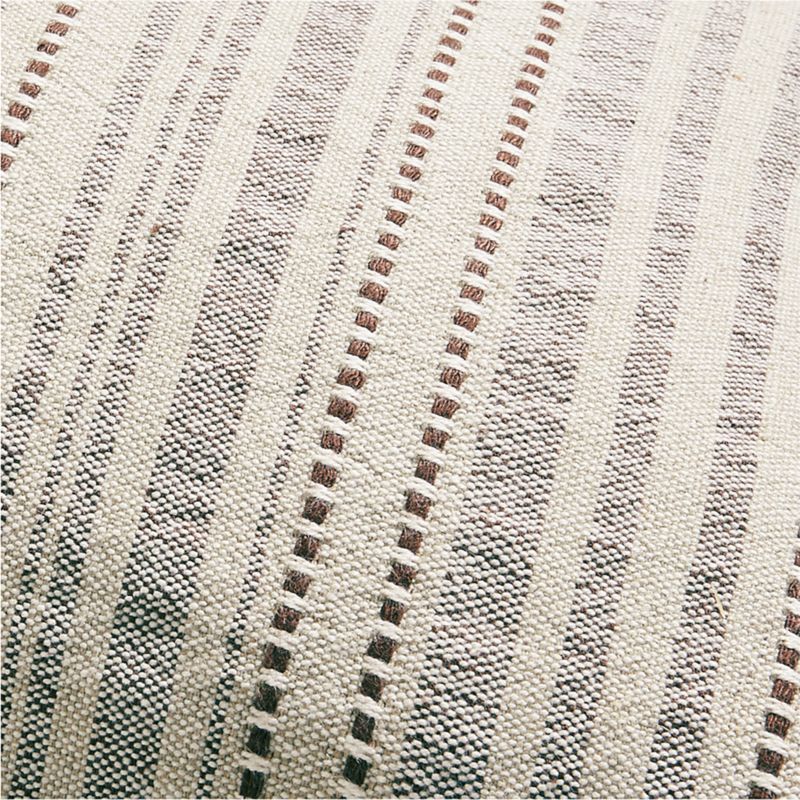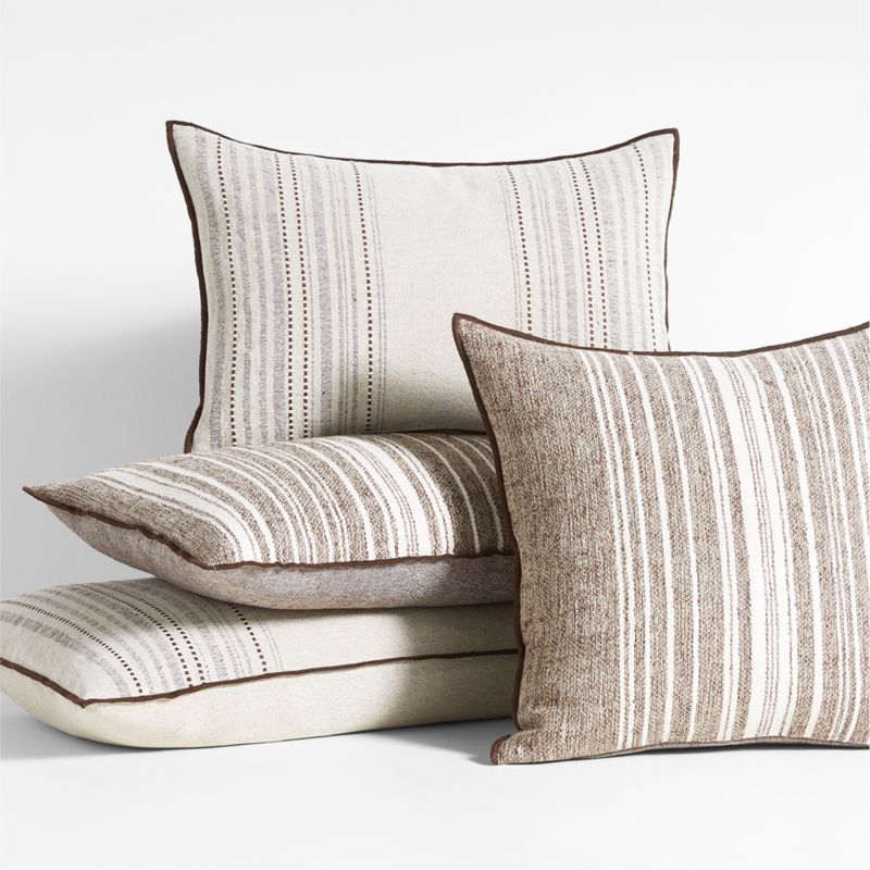 Organically varied lines stripe our Bande throw pillow cover for a chic and casual look. Dyed brown and ivory to coordinate effortlessly with our bedding, the cotton-linen threads stitch and weave a homespun texture and a variegated pattern. Dark brown merrow stitching finishes the lumbar pillow cover with a touch of crisp contrast. For maximum comfort, fill our exclusive textured stripe pillow cover with a plush feather insert sold separately.