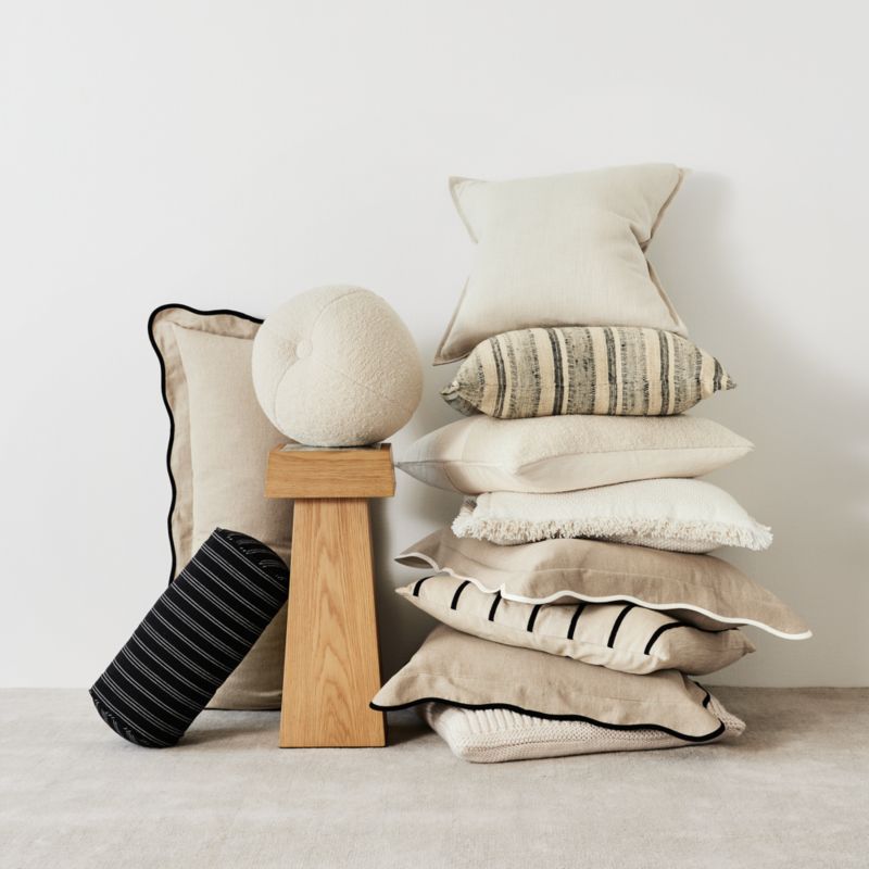 Our sphere throw pillow rounds out your pillow collection with whimsy. Tailored with a charming single button tuft, the round pillow is made with a textured weave of soft wool-cotton yarn in ivory. You'll love the textural and geometric counterpoint this fun pillow makes alone on an accent chair or tumbled with a selection of our other decorative pillows.