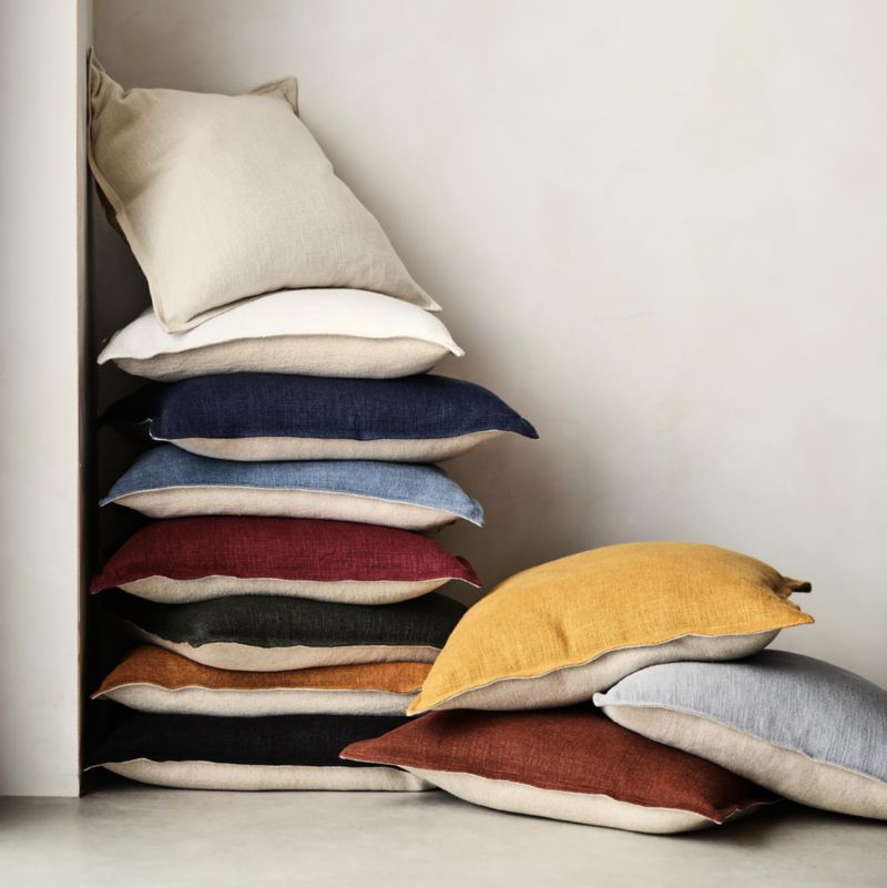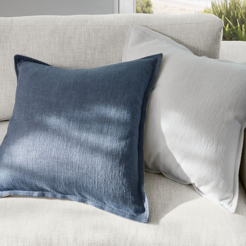 You'll love this pillow's tactile appeal and muted blue color. The pillow is faced in a textured linen blend and backed in smooth flax-colored cotton. Tailored with flange edges, the removable cover is machine washable and softens with every wash. Our blue pillow includes your choice of a plush Feather or lofty down-alternative insert.