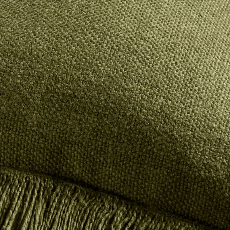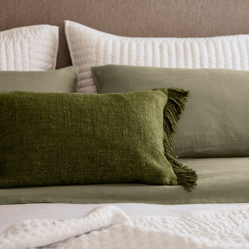 An irresistibly soft and slubby weave gives this throw pillow a relaxed look and feel that you'll want to snuggle up with every day. The inclusion of silky viscose adds a sophisticated sheen to the organic beauty of sustainably sourced linen fibers. Yarn-dyed a warm green hue inspired by cypress trees, the fringed pillow looks chic and casual tossed on a sofa, armchair or bed-especially paired with the matching throw blanket. Our lumbar pillow includes your choice of a plush feather-down or lofty down-alternative insert.