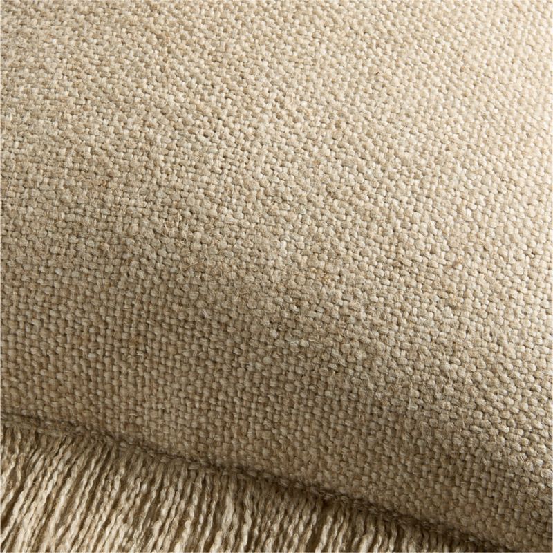 Casual Textured Fringe 24x16 Flax Taupe Throw Pillow with Feather Insert