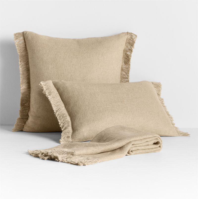 An irresistibly soft and slubby weave gives this throw pillow a relaxed look and feel that you'll want to snuggle up with every day. The inclusion of silky viscose adds a sophisticated sheen to the organic beauty of sustainably sourced linen fibers. Yarn-dyed a warm taupe hue inspired by flax, the fringed pillow looks chic and casual tossed on a sofa, armchair or bed-especially paired with the matching throw blanket. Our lumbar pillow includes your choice of a plush feather-down or lofty down-alternative insert.