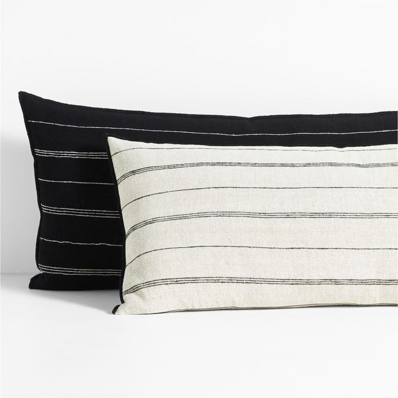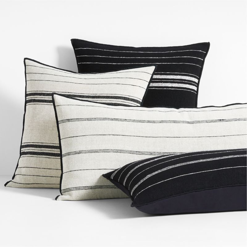 Our Chatou pillow cover updates classic ticking stripes for a chic and casual look in black on off-white. A blend of linen and organic cotton, the fabric's tactile, homespun weave contrasts with the crisp merrow-stitched edging. Chatou brings pattern and texture to your sofa, armchair or bed, pairing effortlessly with our ivory and ink black bedding collections. Fill our exclusive lumbar throw pillow cover with a plush feather insert sold separately.