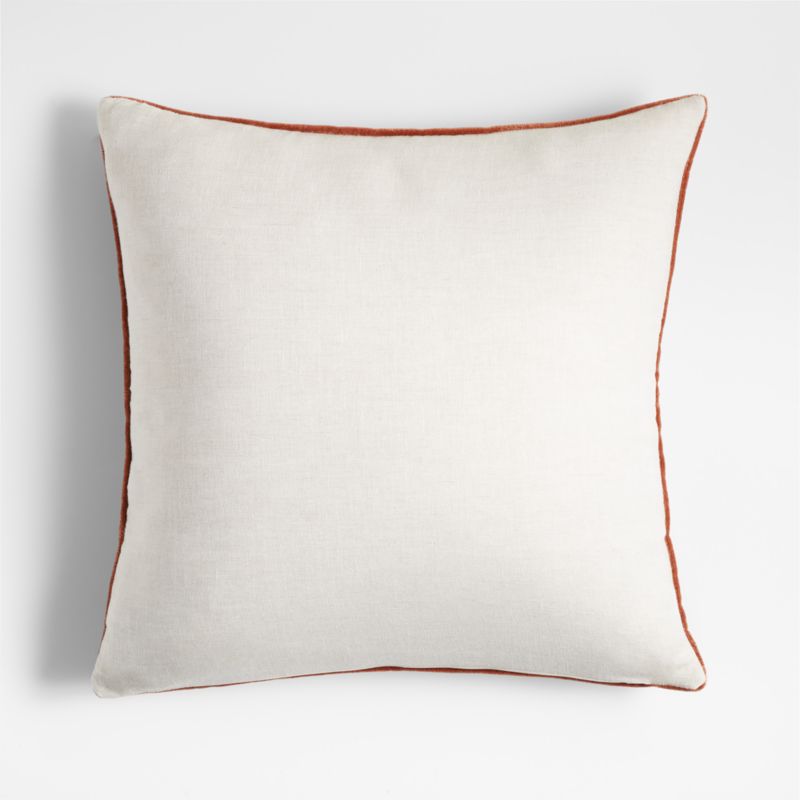 Our terracotta pillow reproduces the luxurious look and feel of mohair wool-a fiber treasured for its softness and sheen-in durable recycled polyester. Reversing to creamy linen, the orange-red pillow offers versatility and a lovely interplay of texture tossed on a sofa, chair or bed. Our reversible faux linen throw pillow includes your choice of a plush feather-down or lofty down-alternative insert.