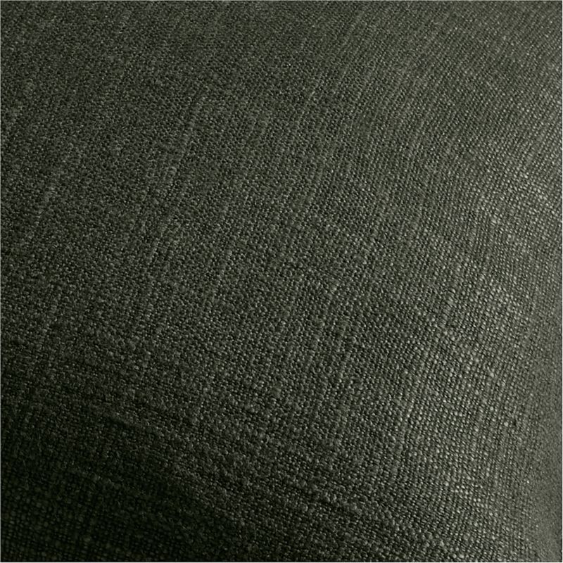 You'll love this pillow's organic tactile appeal and dark green-grey hue that serves as a sophisticated neutral. The pillow is faced in a textured linen-blend and backed in smooth flax-hued cotton-linen. Tailored with flange edges, the removable cover is machine washable and softens with every wash. Our square pillow includes your choice of a plush feather-down or lofty down-alternative insert.