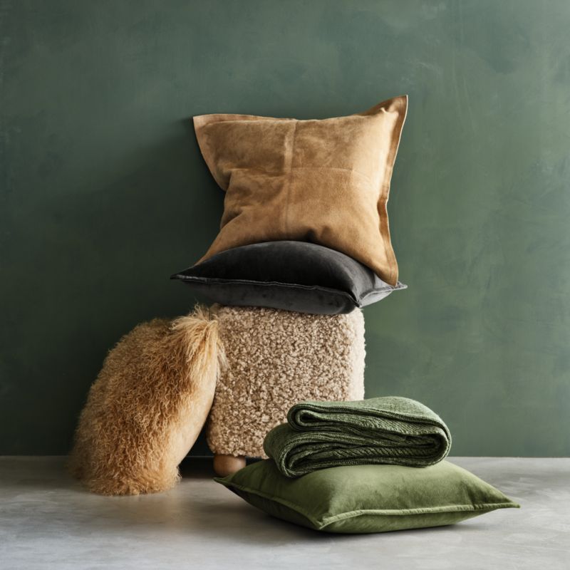 Pieces of camel brown suede stitch together a timeless-yet-modern square-patched pillow. Backed with beautiful linen, the soft and durable leather is tailored with flange edges. Toss Hyde onto a sofa, armchair or bed to bring a subtle touch of rustic luxe to your decor, or layer with our similarly hued velvet, wool and sheepskin pillows for a chic monochromatic mixed-material look. Our exclusive pieced suede throw pillow includes your choice of a plush feather or lofty down-alternative insert.