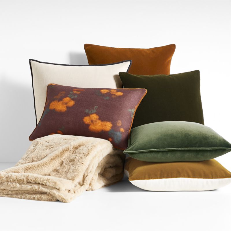 Painterly florals inspired by Impressionist art glow against the deep burgundy background of our throw pillow cover. Printed in rich oranges and greens on a cotton-jute blend, the organic pattern reinterprets Impressionism's pure color and play of light for the modern home. Caramel-hued velvet piping completes the romantic look that coordinates with our Impressionist bedding collection. Fill our exclusive lumbar pillow cover with a plush feather or lofty down-alternative insert sold separately.
