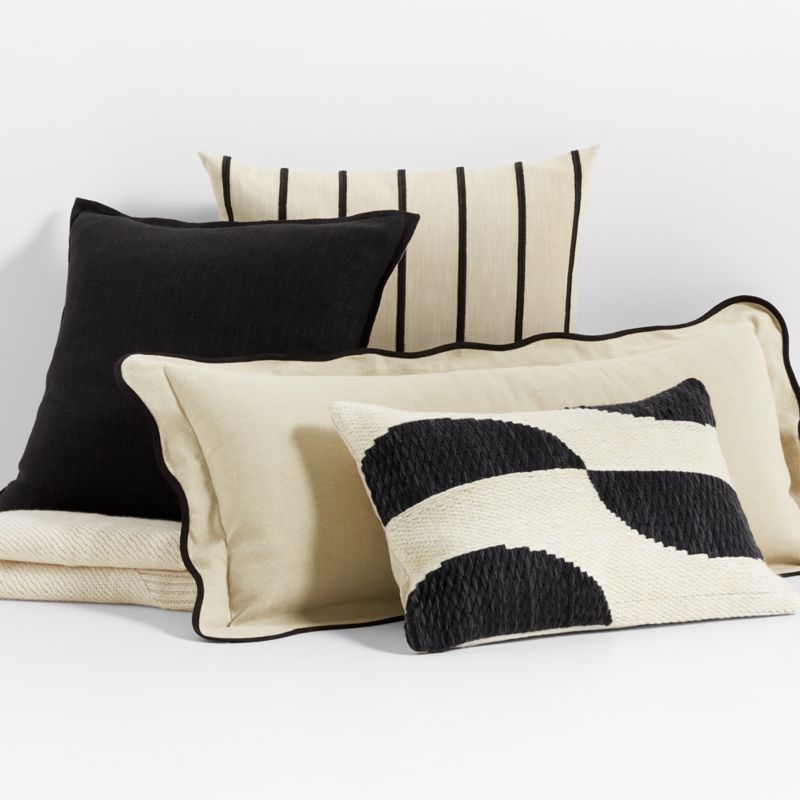 You'll love this pillow's tactile appeal and inky hue. The textured linen-blend fabric reverses to smooth off-white cotton-linen. Well-tailored with flange edges, the removable cover is machine washable and softens with every wash. Our exclusive laundered linen pillow includes your choice of a plush feather or lofty down-alternative insert.
