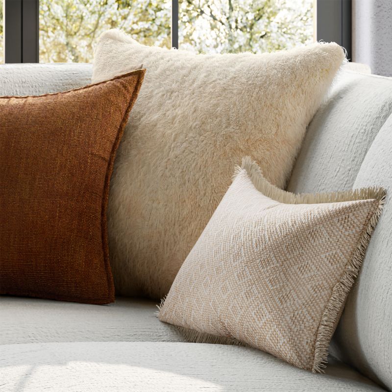You'll love this pillow's tactile appeal and rich maple-inspired color. The pillow is faced in a textured linen-blend and backed in smooth flax-hued cotton-linen. Tailored with flange edges, the removable cover is machine washable and softens with every wash. Our brown throw pillow includes your choice of a plush feather-down or lofty down-alternative insert.