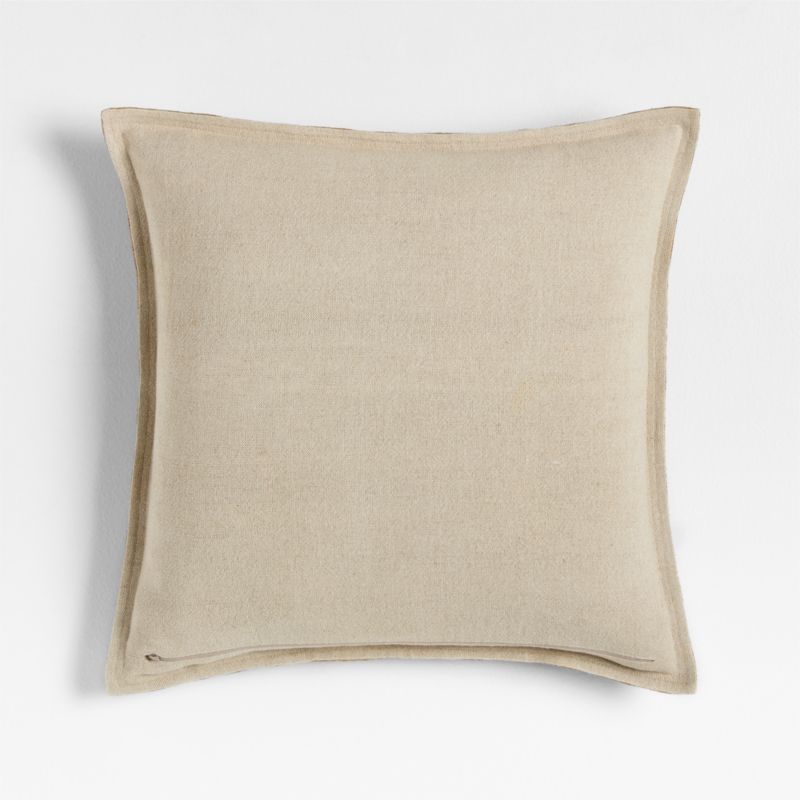 You'll love this pillow's organic tactile appeal and golden ocher hue. The pillow is faced in a textured linen-blend and backed in smooth flax-hued cotton-linen. Tailored with flange edges, the removable cover is machine washable and softens with every wash. Our square pillow includes your choice of a plush feather-down or lofty down-alternative insert.