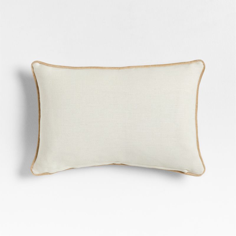 Our Oceanside pillow's expansive seascape brings dreamy coastal vibes to your decor. Printed in a pearly palette of serene sunrise hues, the scene is framed in sandy piping. This statement pillow instantly enlivens an assortment of solid throw pillows to give your sofa or bed a fresh look, while the organic textures of jute and cotton suit the beach's natural beauty. The lumbar pillow includes your choice of a plush feather-down or lofty down-alternative insert.
