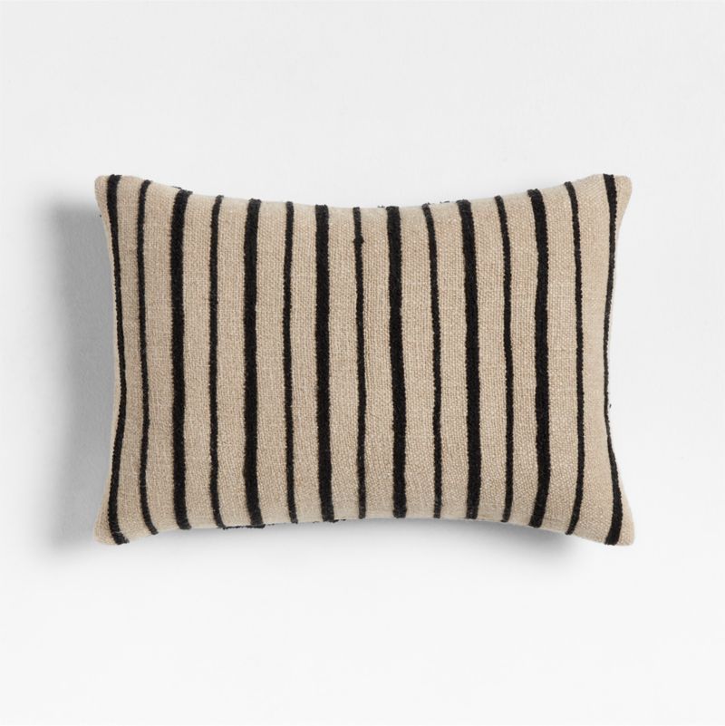 Windswept palm trees and a solitary seagull grace our Praia pillow with breezy tropical vibes. The chunky black embroidery layers texture onto the slubby linen-blend base, and the pillow reverses to dimensional stripes in the same black-and-sand palette. Praia mixes and matches effortlessly with our other neutral throw pillows. Our reversible lumbar pillow includes your choice of a plush feather-down or lofty down-alternative insert.