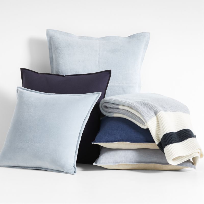 You'll love this pillow's tactile appeal and serene and stoney grey hue. The textured linen-blend fabric reverses to smooth off-white cotton-linen. Well-tailored with flange edges, the removable cover is machine washable and softens with every wash. Our exclusive laundered linen pillow in quarry grey includes your choice of a plush feather or lofty down-alternative insert.
