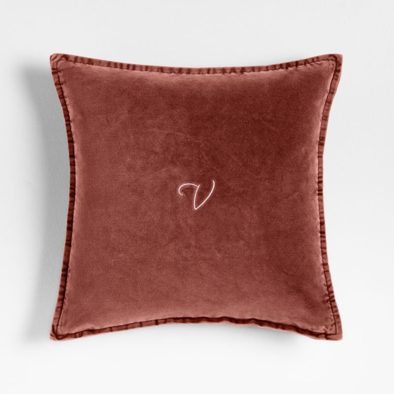 Elevated yet low-key, refined but relaxed. Our exclusive pillow cover collection reimagines velvet for everyday luxury-casual, comfortable and chic. The washed finish has a modern matte look, while the dyeing process creates subtle variations in the chestnut-inspired earthy red hue. Softly finished with flange tailoring, the organic cotton pillow looks right year-round tossed on your sofa, armchair or bed. Our solid square throw pillow includes your choice of a plush feather-down or lofty down-alternative insert.