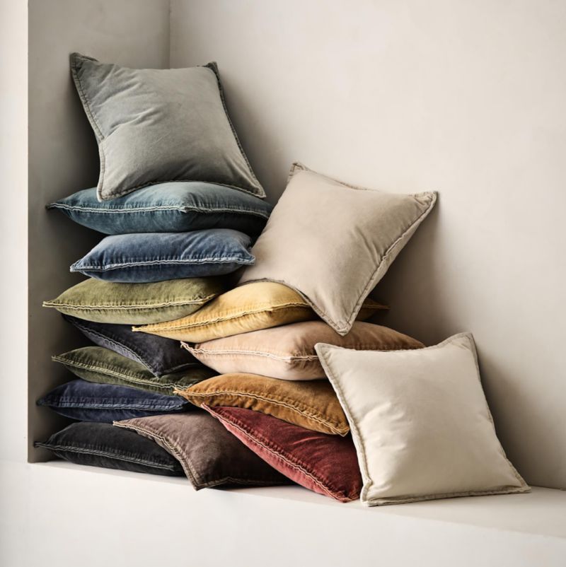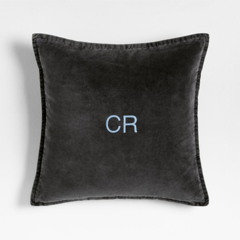 Elevated yet low-key, refined but relaxed. Our exclusive pillow cover collection reimagines velvet for everyday luxury-casual, comfortable and chic. The washed finish has a modern matte look, while the dyeing process creates subtle variations in the dark grey sea-inspired hue. Softly finished with flange tailoring, the organic cotton pillow looks right year-round tossed on your sofa, armchair or bed. Our solid square throw pillow includes your choice of a plush feather-down or lofty down-alternative insert.