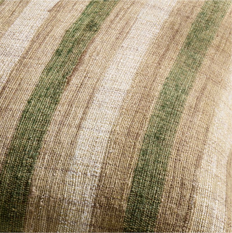 Alternating stripes of palm frond green, sandy tan and sunbaked ivory, our Riviera pillow is heathered throughout with the natural color of undyed yarn. Despite its rustic appearance, the pillow has a refined, silky soft hand and modern matte look. Our square pillow includes your choice of a plush feather-down or lofty down-alternative insert.