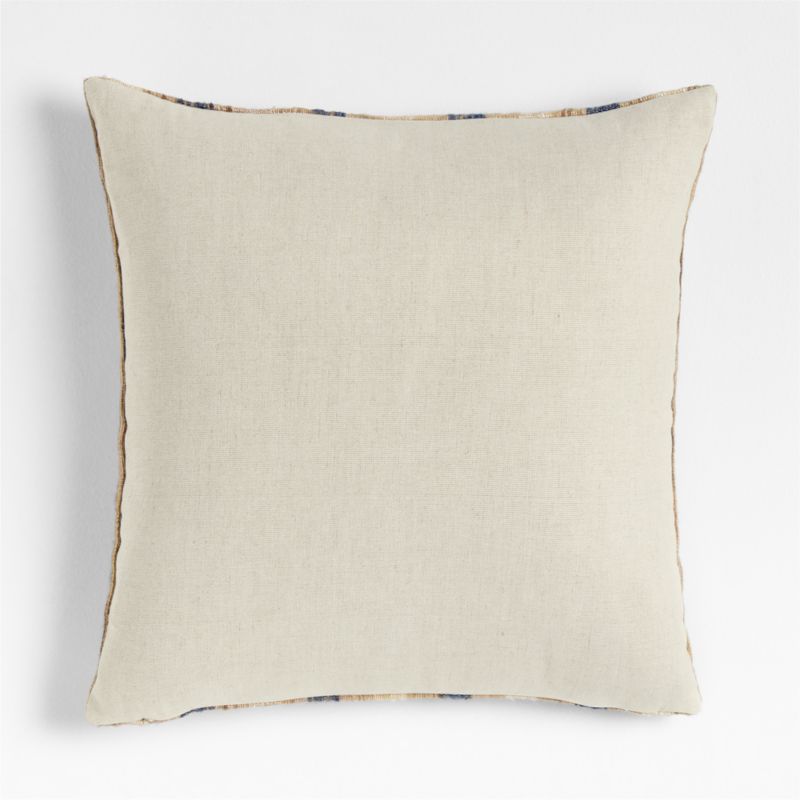 Alternating stripes of nautical navy blue, sandy tan and sunbaked ivory, our Riviera pillow is heathered throughout with the natural color of undyed yarn. Despite its rustic appearance, the pillow has a refined, silky soft hand and modern matte look. Our square pillow includes your choice of a plush feather-down or lofty down-alternative insert.