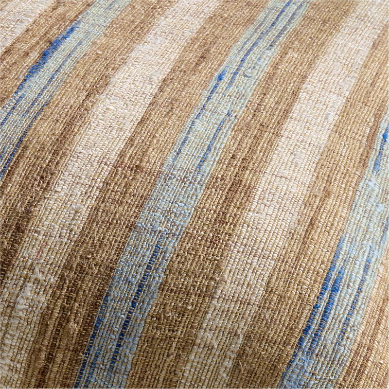 Alternating stripes of pale ocean blue, sandy tan and sunbaked ivory, our Riviera pillow is heathered throughout with the natural color of undyed yarn. Despite its pleasingly rustic appearance, the pillow has a refined, silky soft hand and modern matte look. Our square pillow includes your choice of a plush feather-down or lofty down-alternative insert.