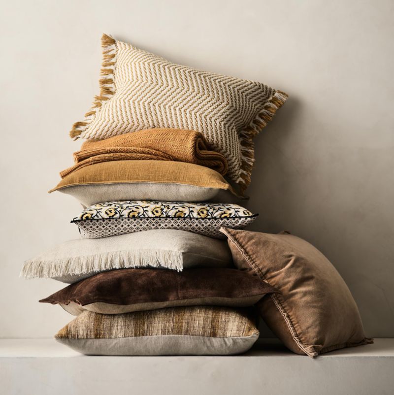 Alternating stripes of sunny yellow, sandy tan and sunbaked ivory, our Riviera pillow is heathered throughout with the natural color of undyed yarn. Despite its rustic appearance, the pillow has a refined, silky soft hand and modern matte look. Our square pillow includes your choice of a plush feather-down or lofty down-alternative insert.