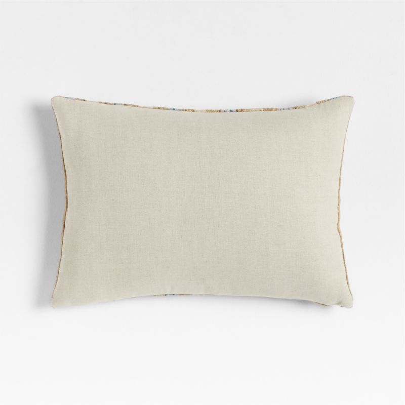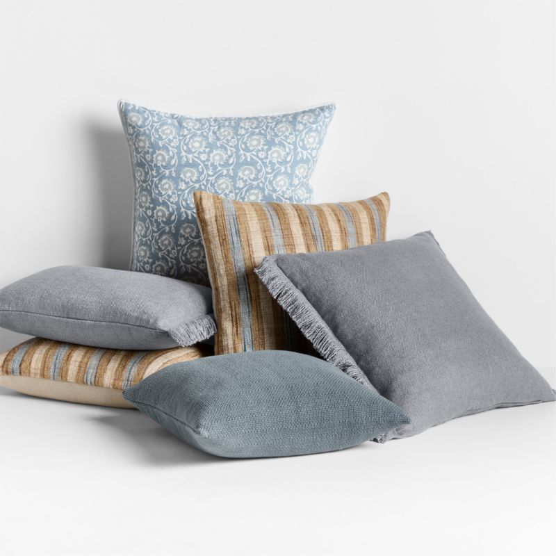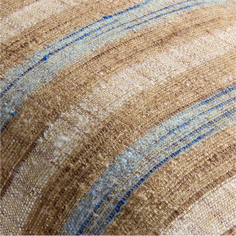 Alternating stripes of pale ocean blue, sandy tan and sunbaked ivory, our Riviera pillow is heathered throughout with the natural color of undyed yarn. Despite its rustic appearance, the pillow has a refined, silky soft hand and modern matte look. Our lumbar pillow includes your choice of a plush feather-down or lofty down-alternative insert.