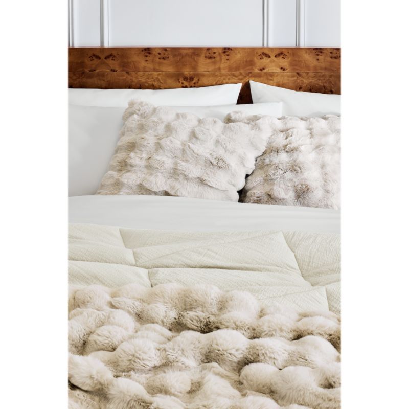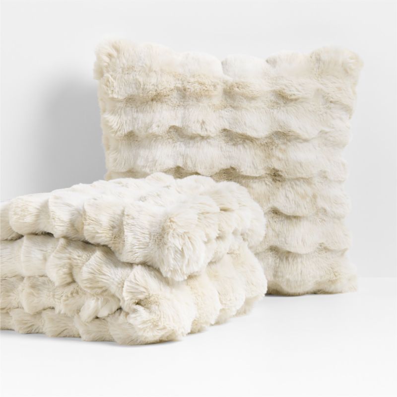 Snuggle up to a faux fur pillow as cozy and luxe as the real thing. Crafted of recycled fibers, the ivory faux fur is subtly puckered to create a fluffy dimensional texture that's irresistibly soft. We love to layer this exceptional throw pillow with others in our faux fur and shearling collections on a sofa or bed for serious cool-weather indulgence. Our exclusive faux fur pillow includes your choice of a plush feather-down or lofty down-alternative insert.