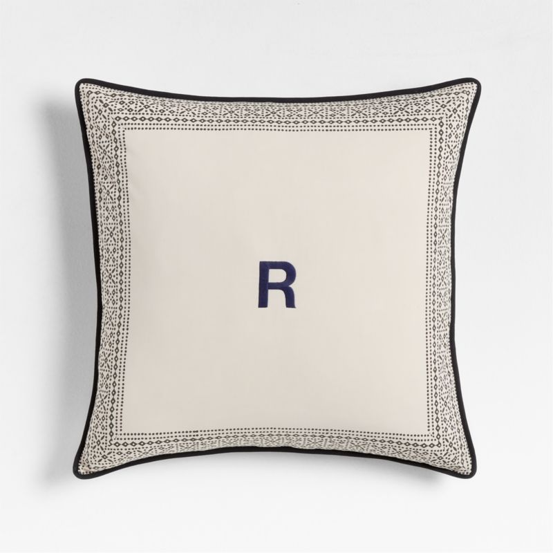 Talented artisans in rural Jaipur, India, print each of our pillows by hand, repeatedly stamping taupe cotton with a carved block to create the ornate design each cover is beautifully unique. Block-printed in deep midnight navy, a graceful frame made up of petite geometric shapes makes this pillow particularly perfect for monogramming. Grey diamonds and quatrefoils pattern the reverse side, and black piping provides a crisp outline. Our square pillow includes your choice of a plush feather-down or lofty down-alternative insert.